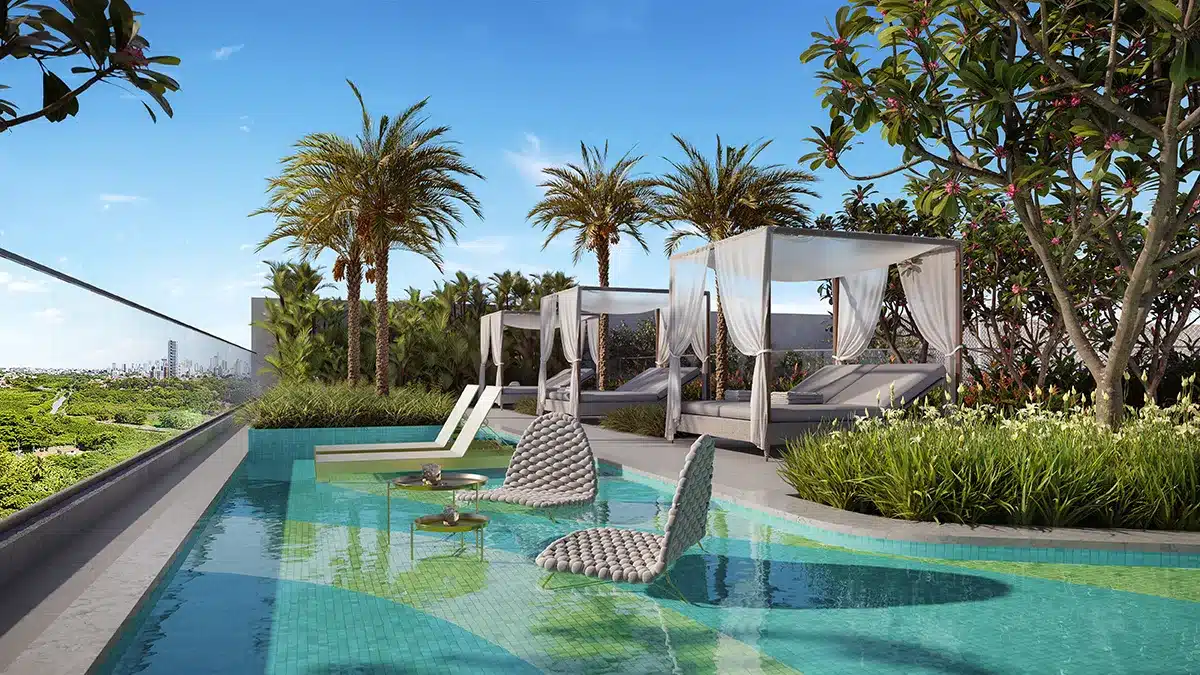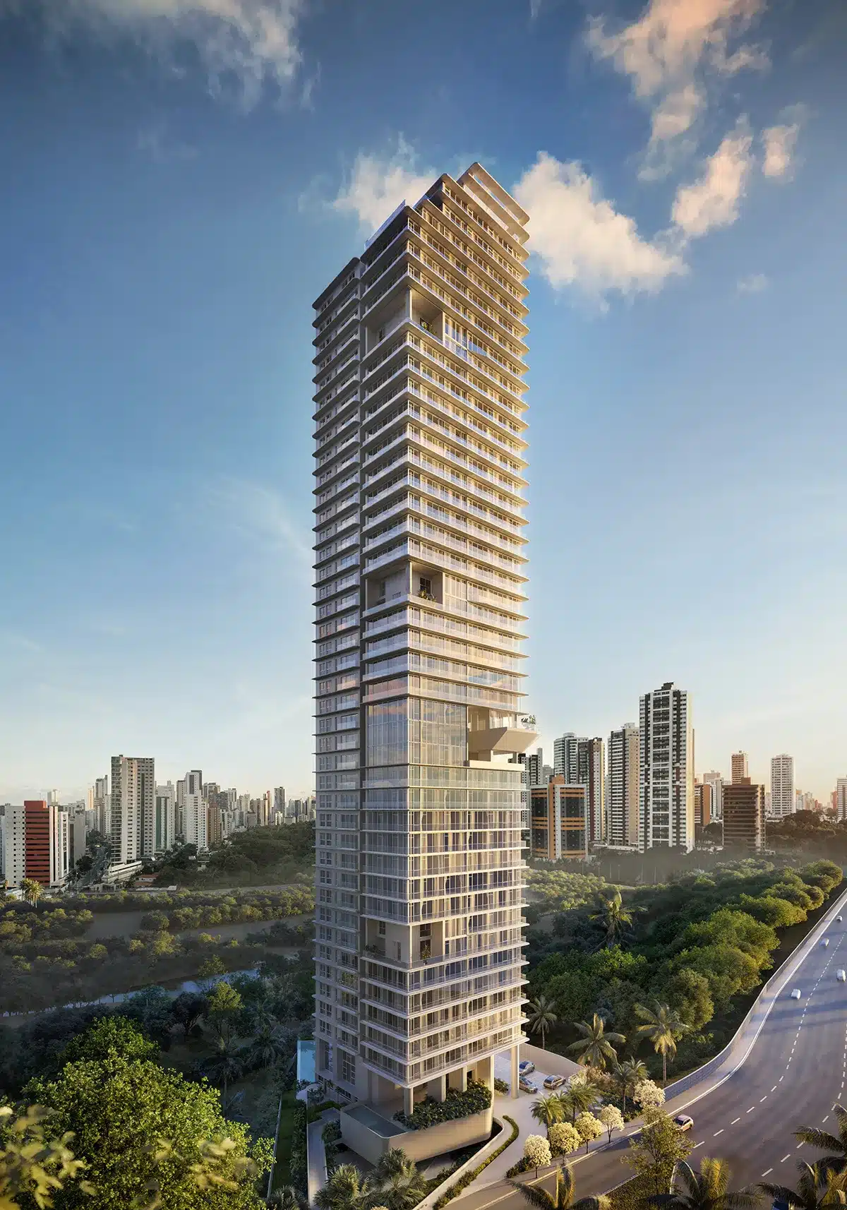 Com 40 pavimentos e apenas 4 apartamentos por andar, o projeto oferece exclusividade em cada detalhe. Plantas de 3 e 4 suítes, com metragens entre 105 m² e 167 m², garantem conforto, ventilação cruzada e iluminação natural.